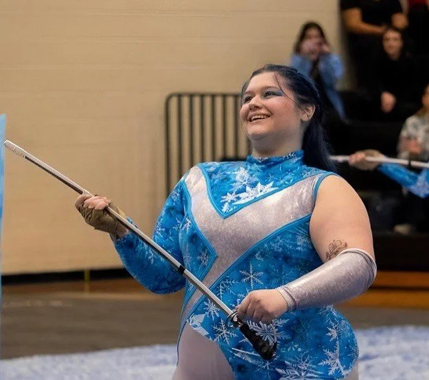 Maddie Green has been involved with colorguard and winterguard since she was in 8th grade at Robious Middle School. She is currently a member of the independent group Revolutionary Winterguard. She has been an instructor for the James River High School Regiment Colorguard and Robious Middle School Raider Winterguard since 2022. She not only enjoys being a part of the sport, but also helping students learn and appreciate the art of colorguard and marching band!